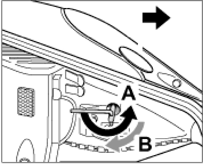 7. Turn the socket wrench back until it points vertically -arrow B- downwards.