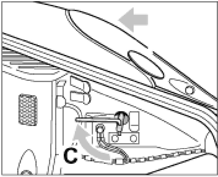 2. Press the headlight to the rear, turning the socket wrench at the same time until the wrench points horizontally to the rear -arrow C-. In the process, the headlight lock must engage with an audible and perceptible click.
