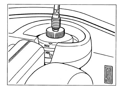Some brake fluid is also drained off at the bleeder valve of the clutch slave cylinder (approximately 50 cm [sup3 ]).