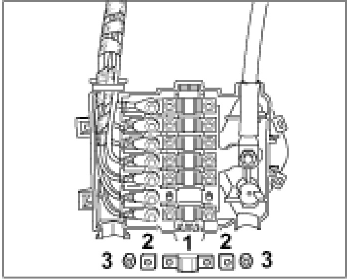 1. Insert new fusible element -1- , using new washers -2- and new hexagon nuts -3- M 5. Tightening torque: 4.0 Nm (3.0 ftlb.)