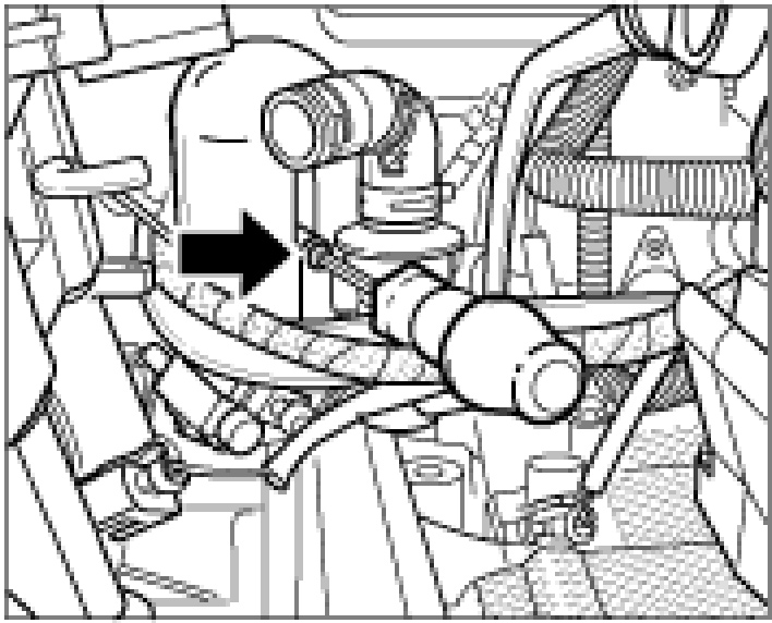 - c. Extract Pentosin fluid from the servo-tank with a pump. Dispose of extracted Pentosin according to the relevant regulations. Lay a cloth under the tank to collect any emerging Pentosin. Open the bayonet lock anti-clockwise and remove the tank. Immediately seal the lower tank opening with a plug ( approx. 30mm).