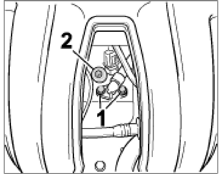 8. Fit new hose to the secondary air pump using a spring-band clamp at the combination valve -2- and connect the vacuum hose -1- to the combination valve.