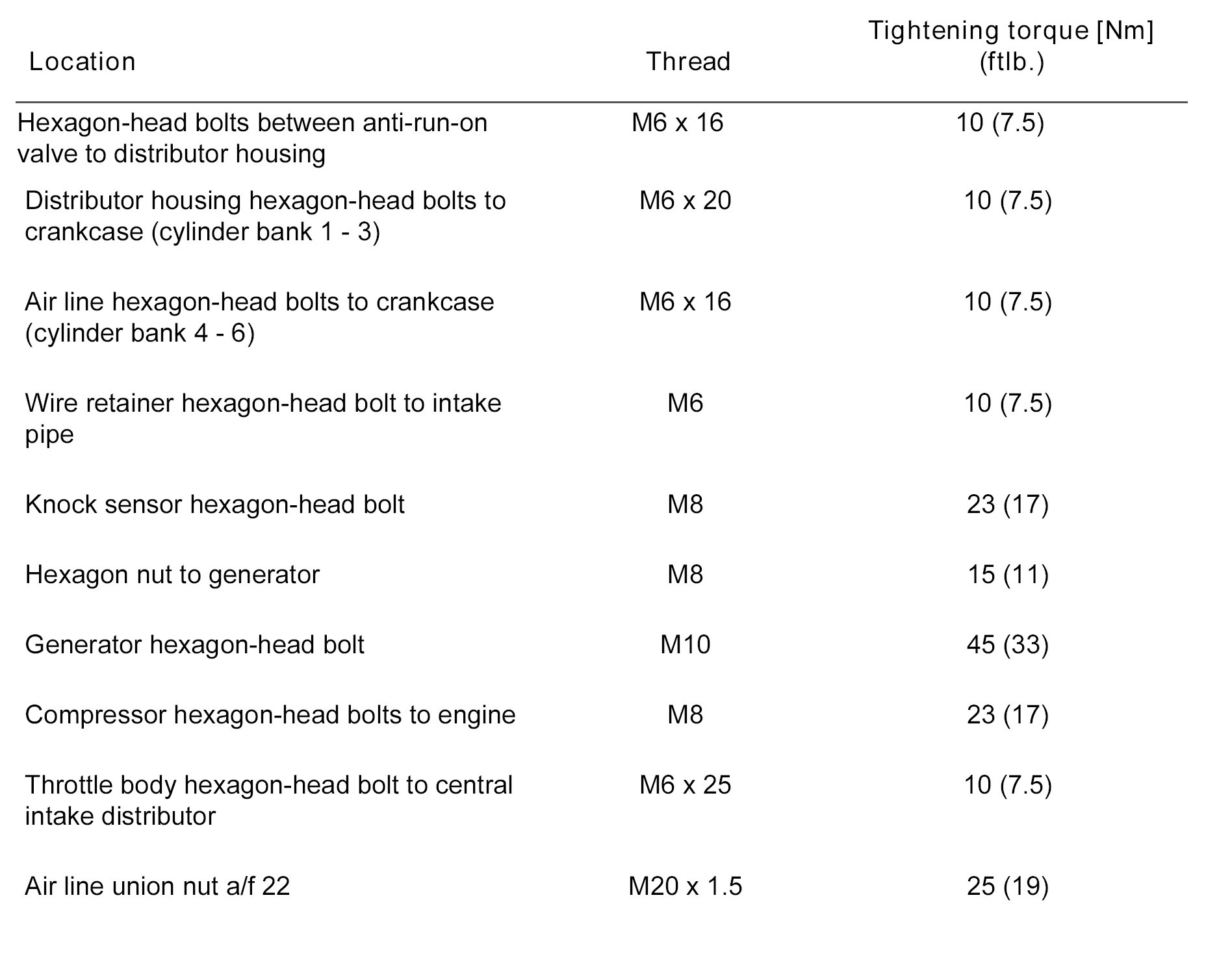 Tightening torque for M6 hexagon-head bolts 10 Nm (7.5 ft.lb.)