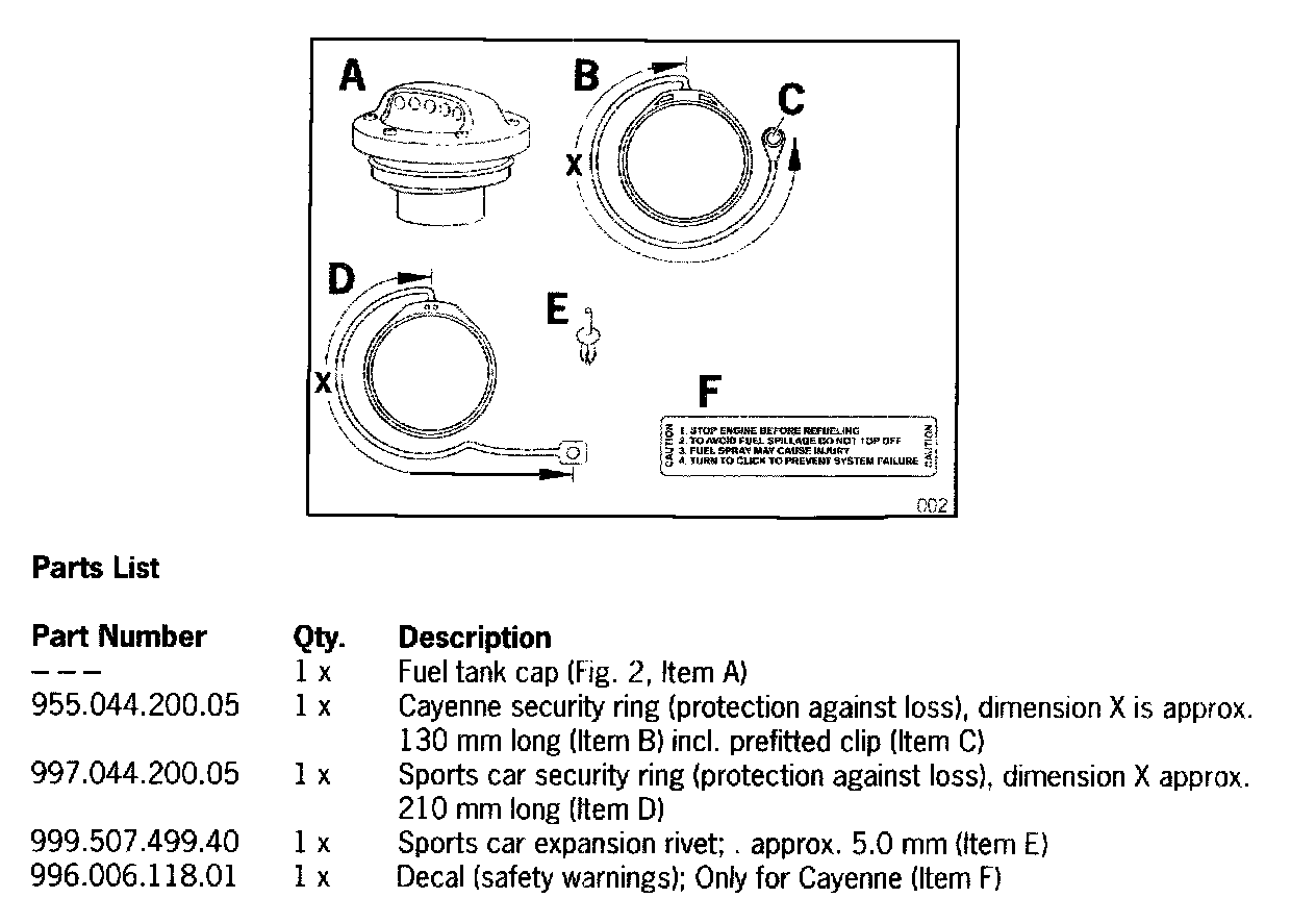 The "fuel filler cap in aluminum look" may only be install by an authorized Porsche dealer!