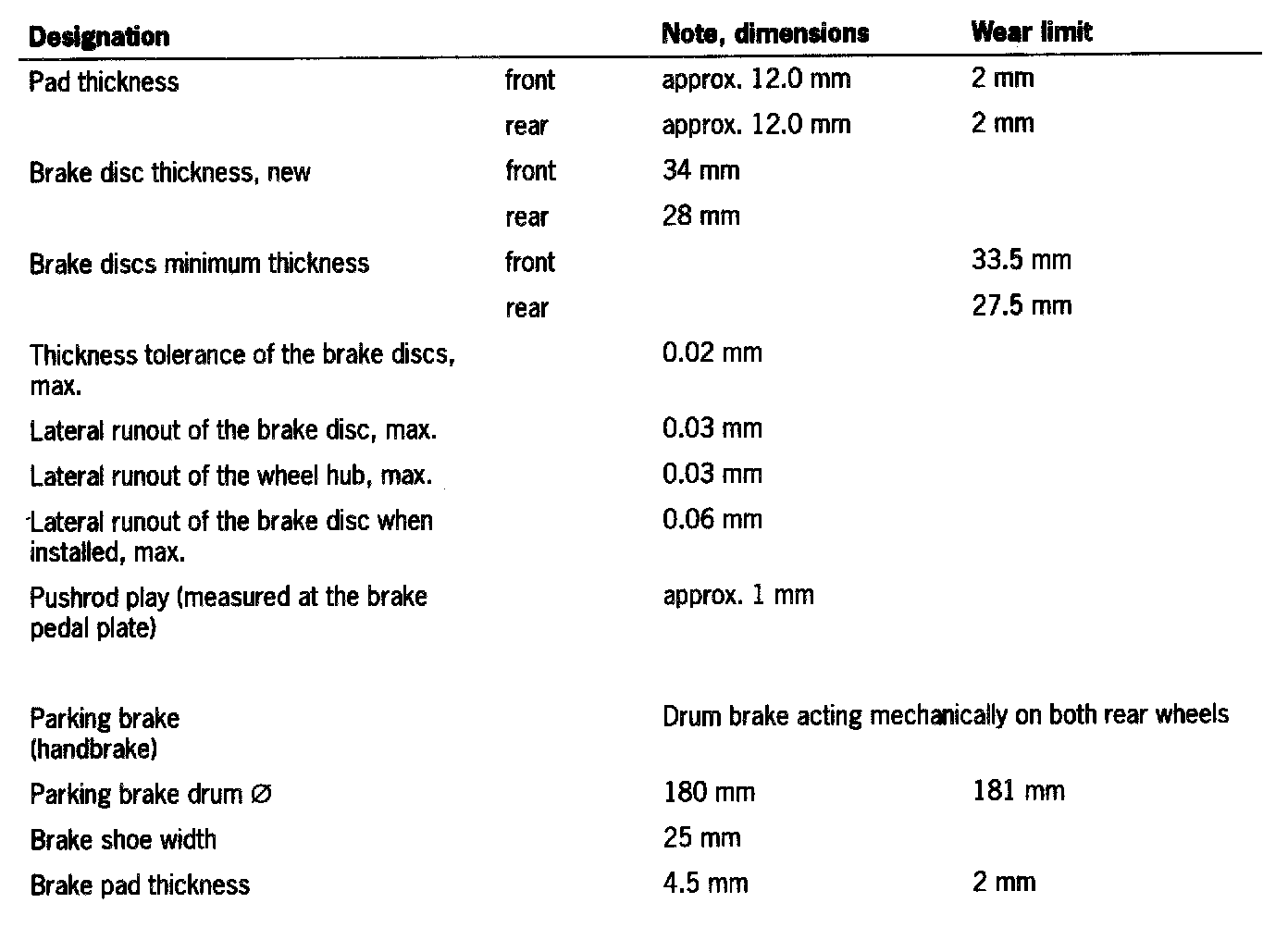 Technical Data/Brake Wear Limit - 911 Carrera 4S With PCCB