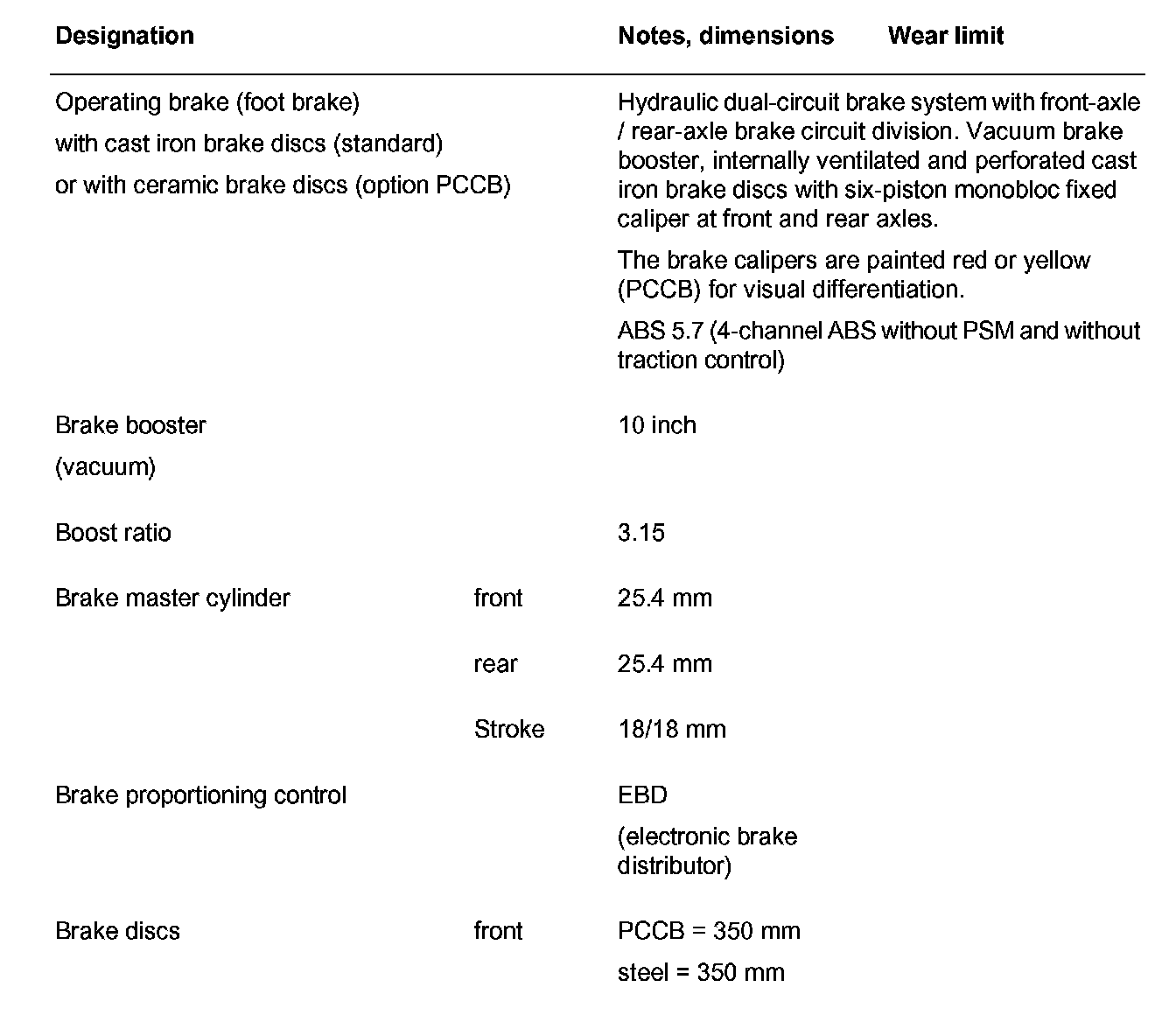 ^ GT3 vehicles as of model year 2004 are equipped as standard with conventional brake system (cast iron brake discs) - and, as an option, with PCCB brake.