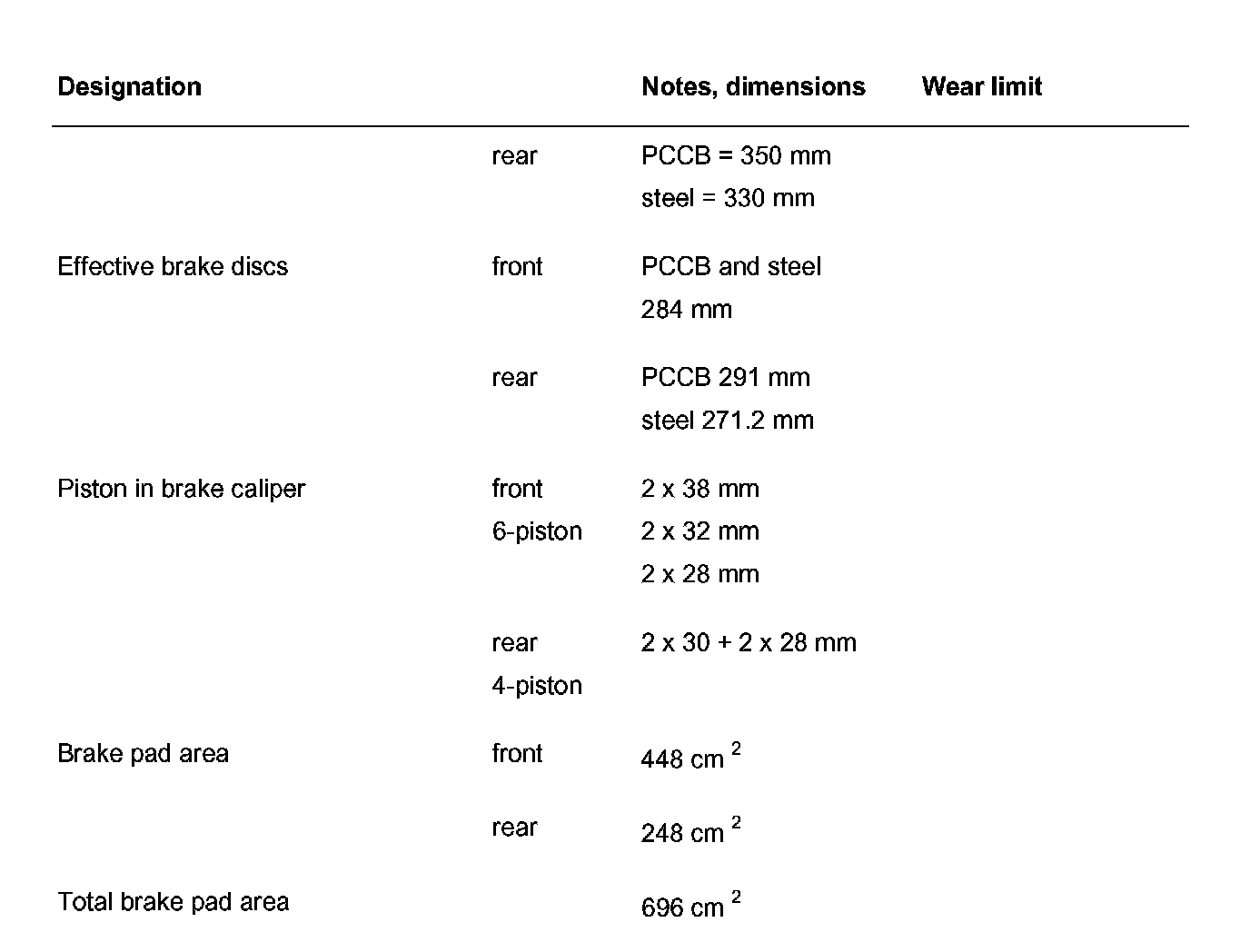 ^ In the case of the cast-iron brake, different brake pads (brake pad version) are sometimes used than with the PCCB brake. Observe allocation without fail!