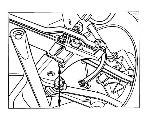 For the height check, place the vehicle on a level surface or on the measuring platform (ready to drive, with a full tank, spare wheel and tools). Compress vehicle at front and rear by approximately 25 mm 2-3 times and allow it to spring back freely.