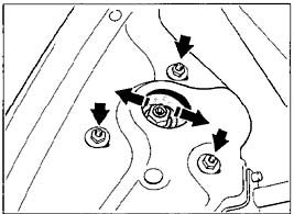 The camber is adjusted by moving the spring strut transversely. For this purpose, loosen the three fastening nuts of the spring-strut mount.