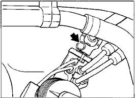 5. Loosen feed and return lines at the steering gear. For this purpose, loosen the hexagon socket head bolt (arrow) and remove the retainer plate. Plug lines or use collecting container. Cover lines if necessary (danger of soiling).