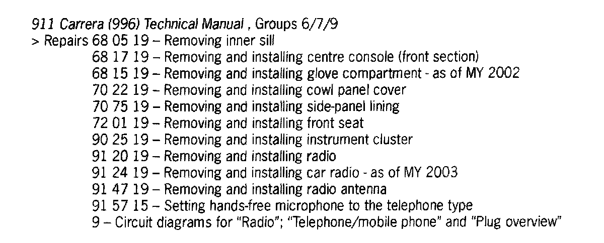 911 Carrera (996) /911 Carrera 4 (996) /911 Targa (996) /911 GT3 (996)