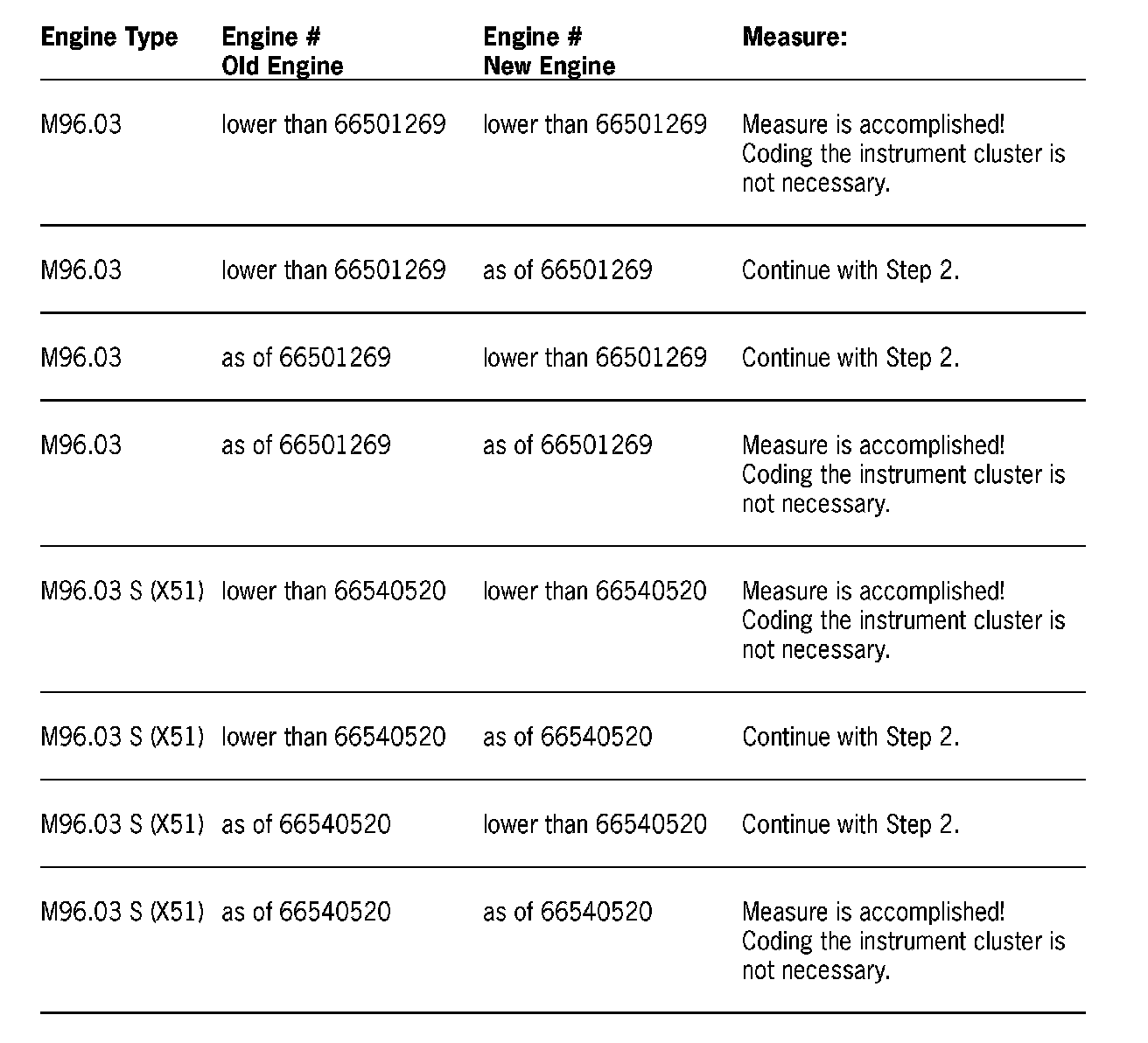 Replacement Engines: Types M96.03 and M96.03 S (X51)