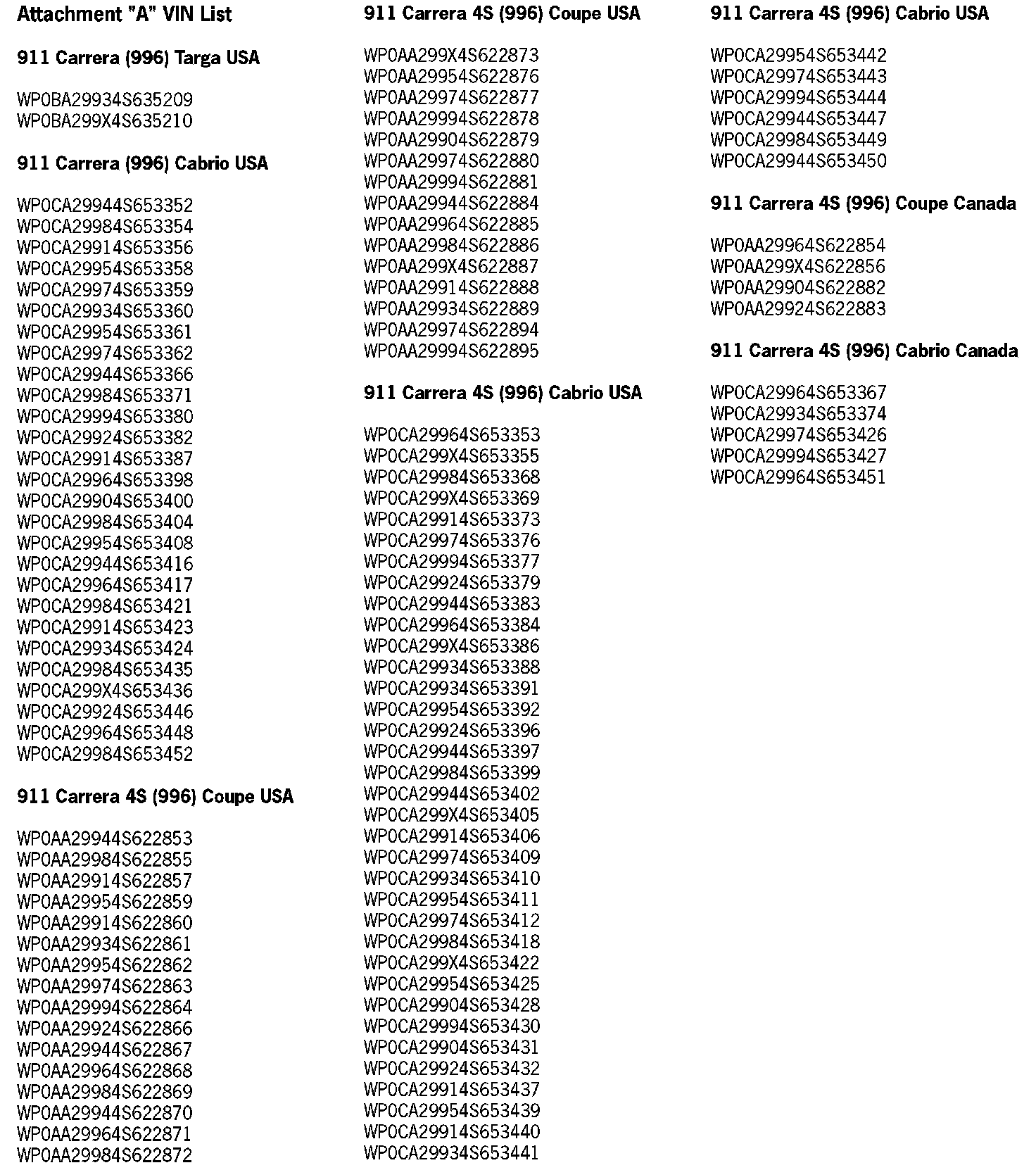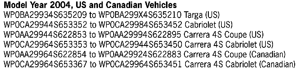 Not every vehicle in the below listed range may be affected. Use the ranges below as a general guideline. Refer to Attachment "A" to determine if a particular vehicle is eligible for this service action. Alternatively, the VIN can be checked in the Porsche e-DCS/WWS for confirmation of an open service action.