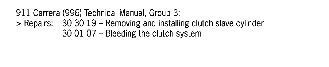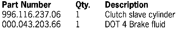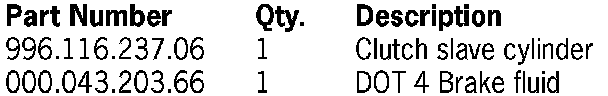 To remedy the situation, the clutch slave cylinder must be removed and replaced with a new slave cylinder. Therefore, we ask that the clutch slave cylinder on the affected vehicles listed below be replaced during the Porsche Owner's next visit to your workshop.