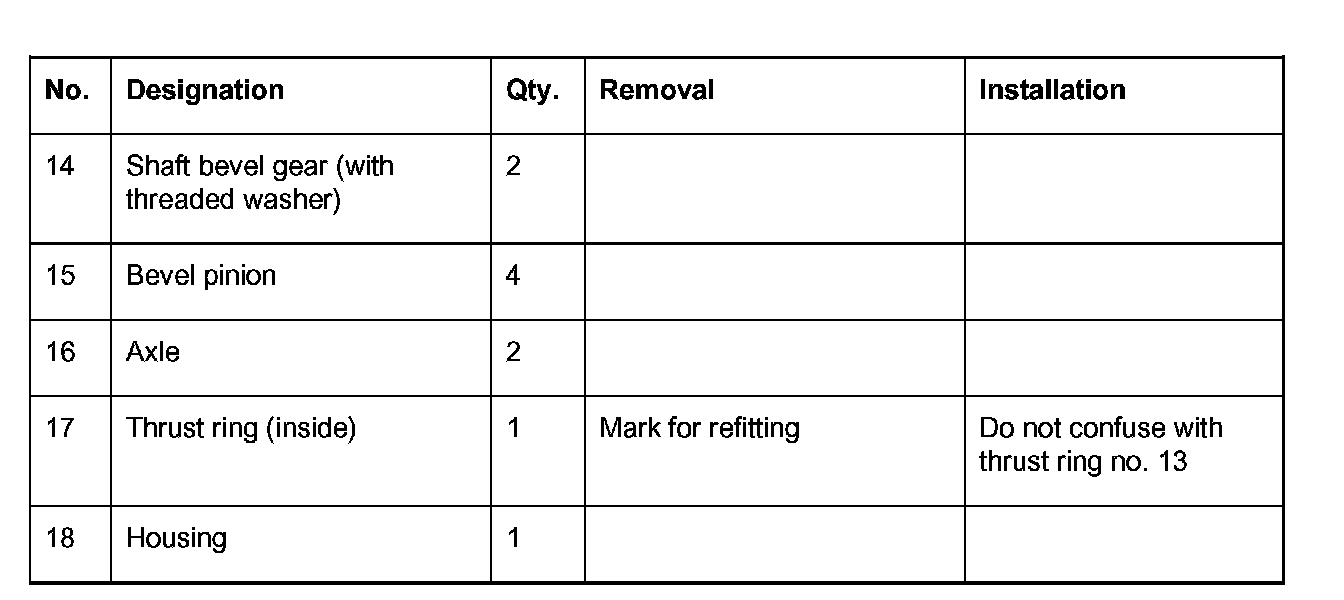 3. After assembly, measure the basic locking torque with one shaft bevel gear driven and the other one fixed. To do this, clamp one flange in the vice with two screws and position differential. Insert second flange with shop-made connecting piece and turn differential with a torque screwdriver. A basic locking torque of 5... 15 Nm (3.5... 11 ft. lbs.) must be reached.