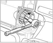 10. Unscrew the fastening screw for the pilot bushing using special tool assembly aid 9663 and pull out the bushing.