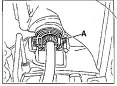1. Replace sealing rings for socket, coat thinly with Vaseline and insert wiring harness socket in correct position. Lug "A" must point towards the spur gear.