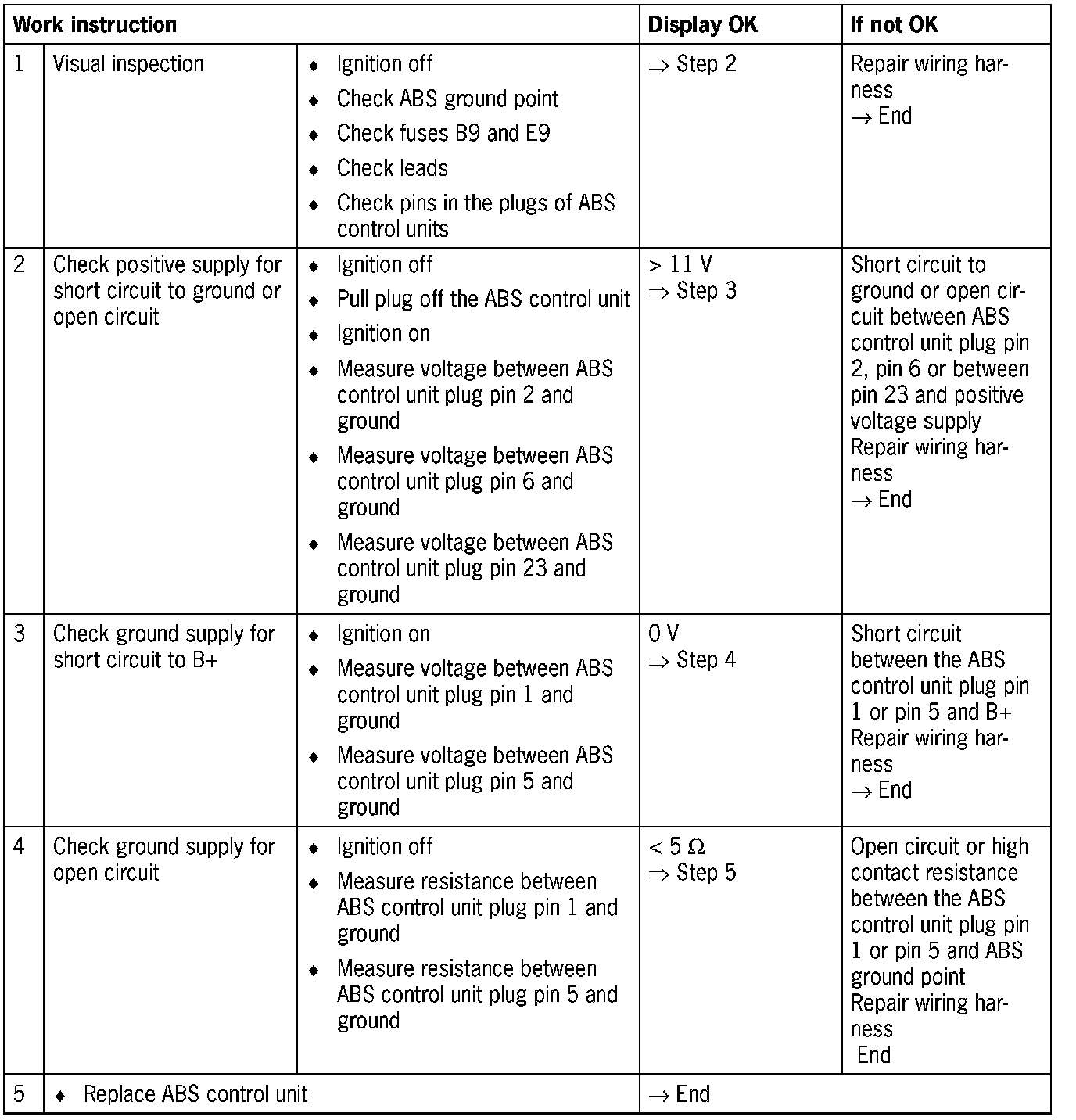 - Faulty connection to ABS control unit