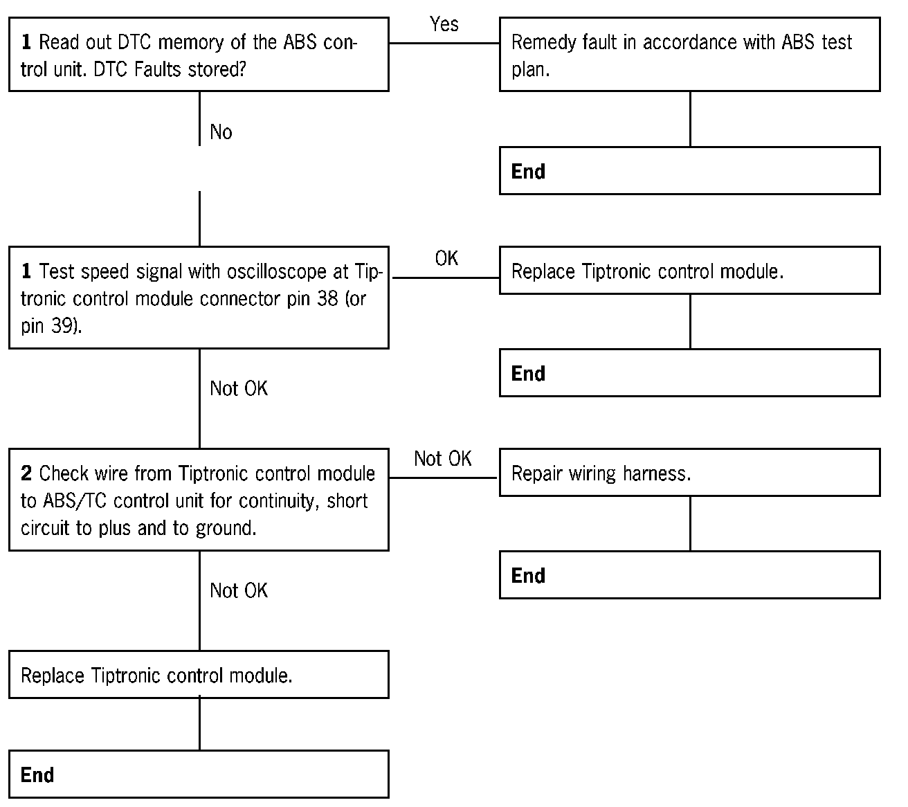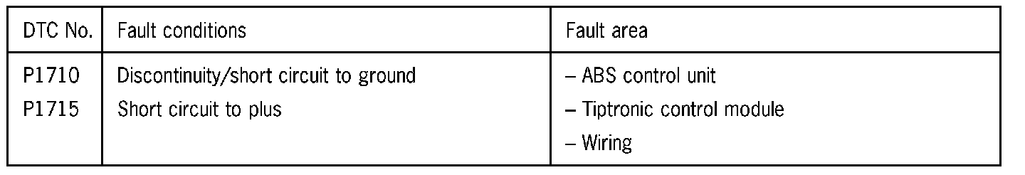 2 Check wires from Tiptronic control module to ABS/TC control unit for short circuit to plus.