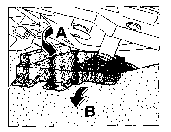 2. Push the control unit carefully over the interior carpet -B- and position it in the holder -A-.