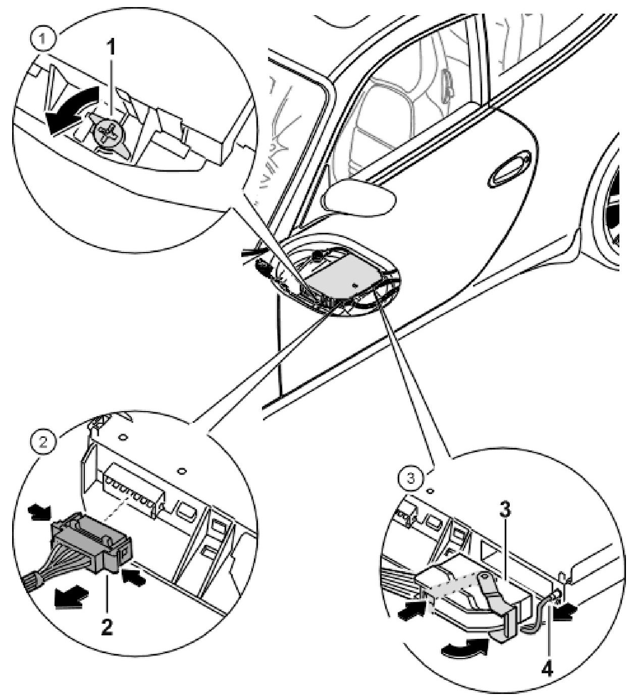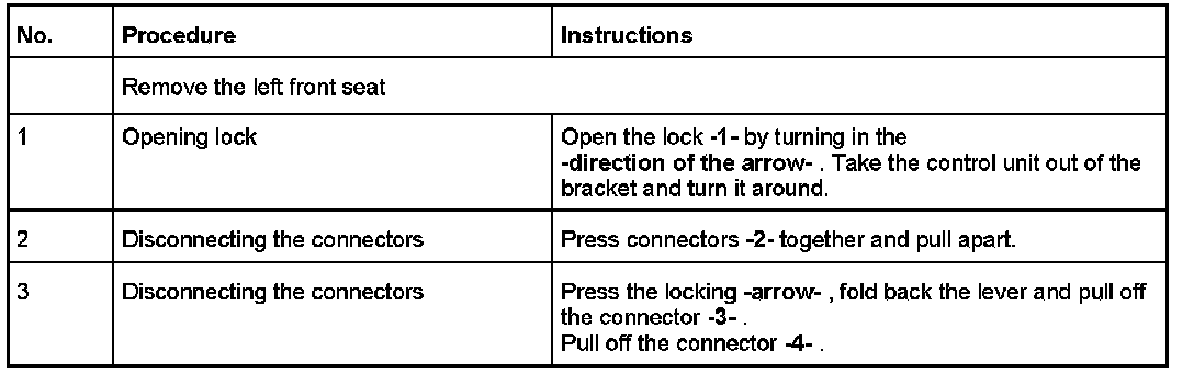 5. Ignition off, disconnect the battery and remove the control unit.