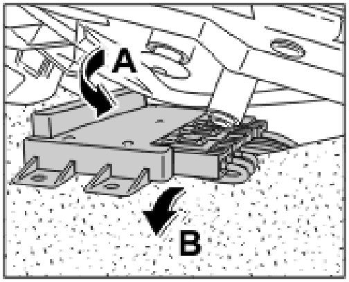 2. Push the control unit carefully over the interior carpet -B- and position it in the holder -A-.