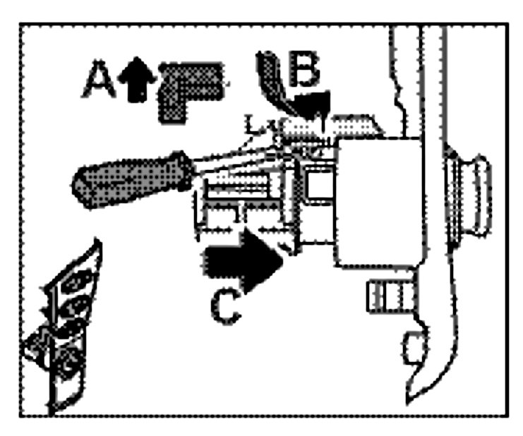 2. Press the lights bracket -arrow B- out to the side with a narrow screwdriver.