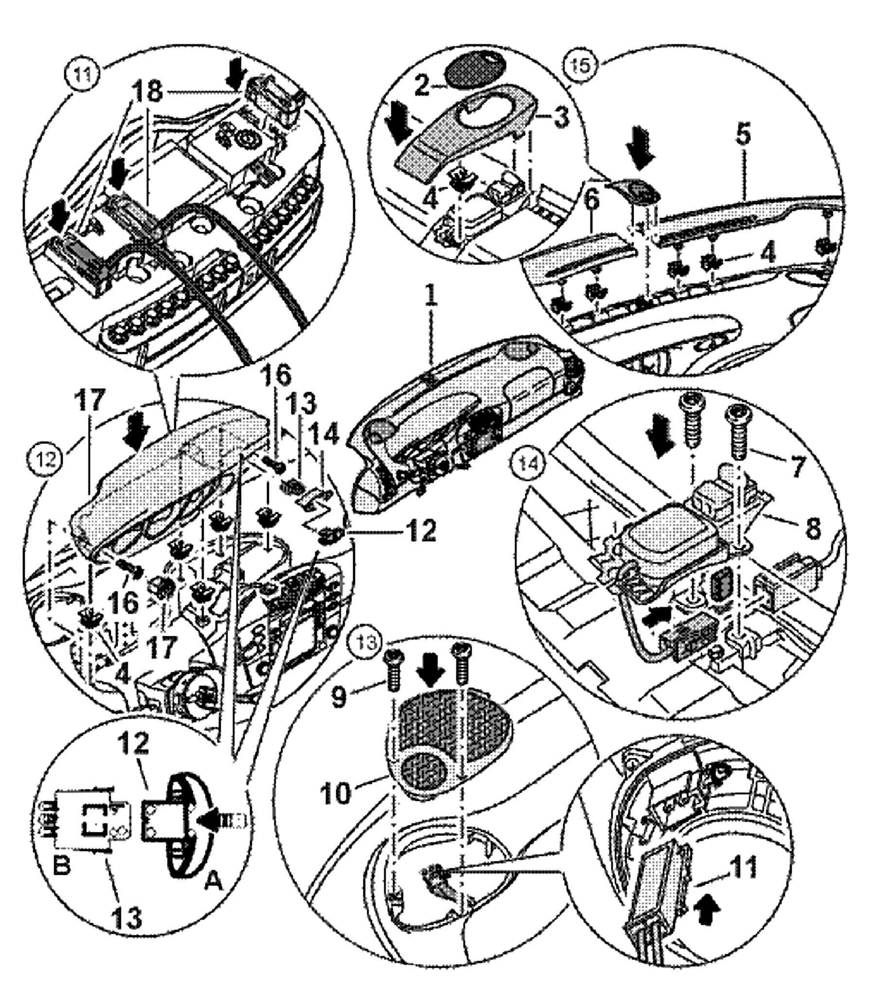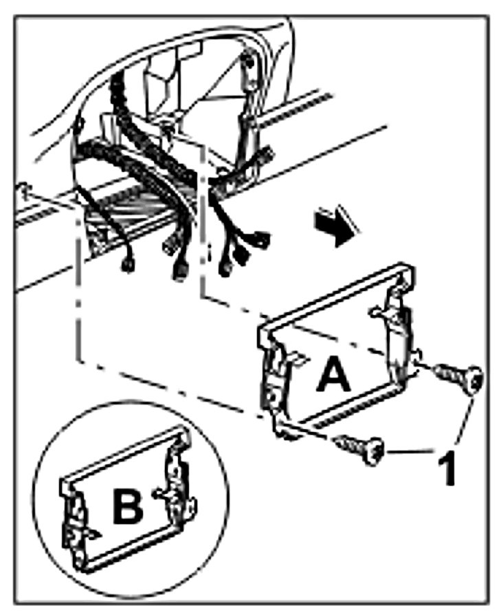 2. Clip the lights bracket -B- into place. Ensure that the locking tabs have engaged.