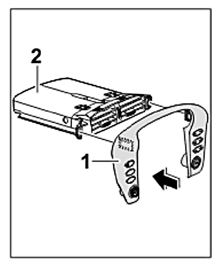3.1. Push the cover -1- with the central vent -2- into the dashboard, ensuring that the clips are engaged at the top and the locking tabs at the side.