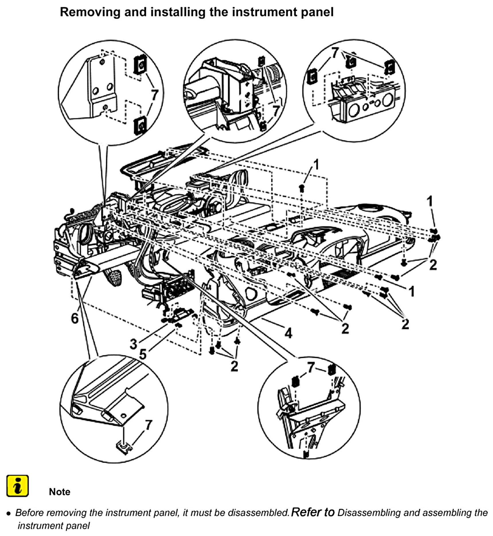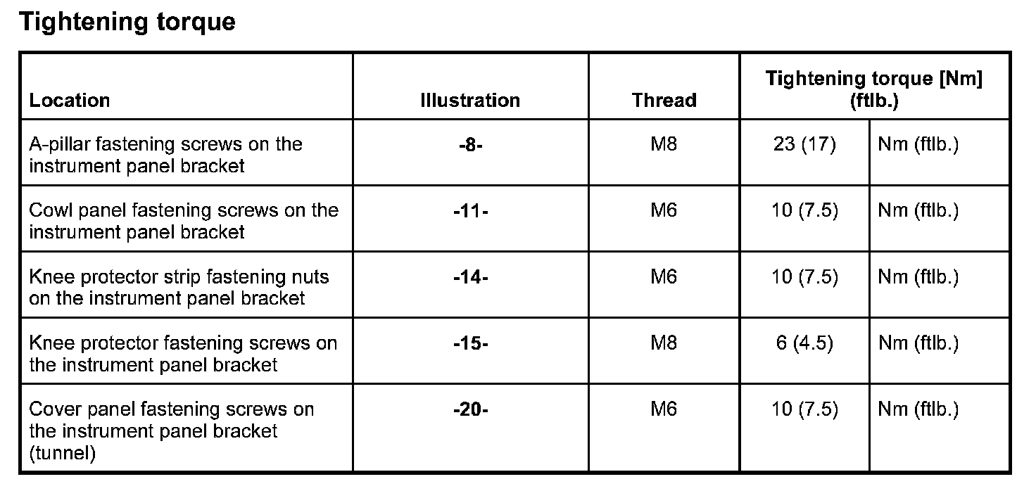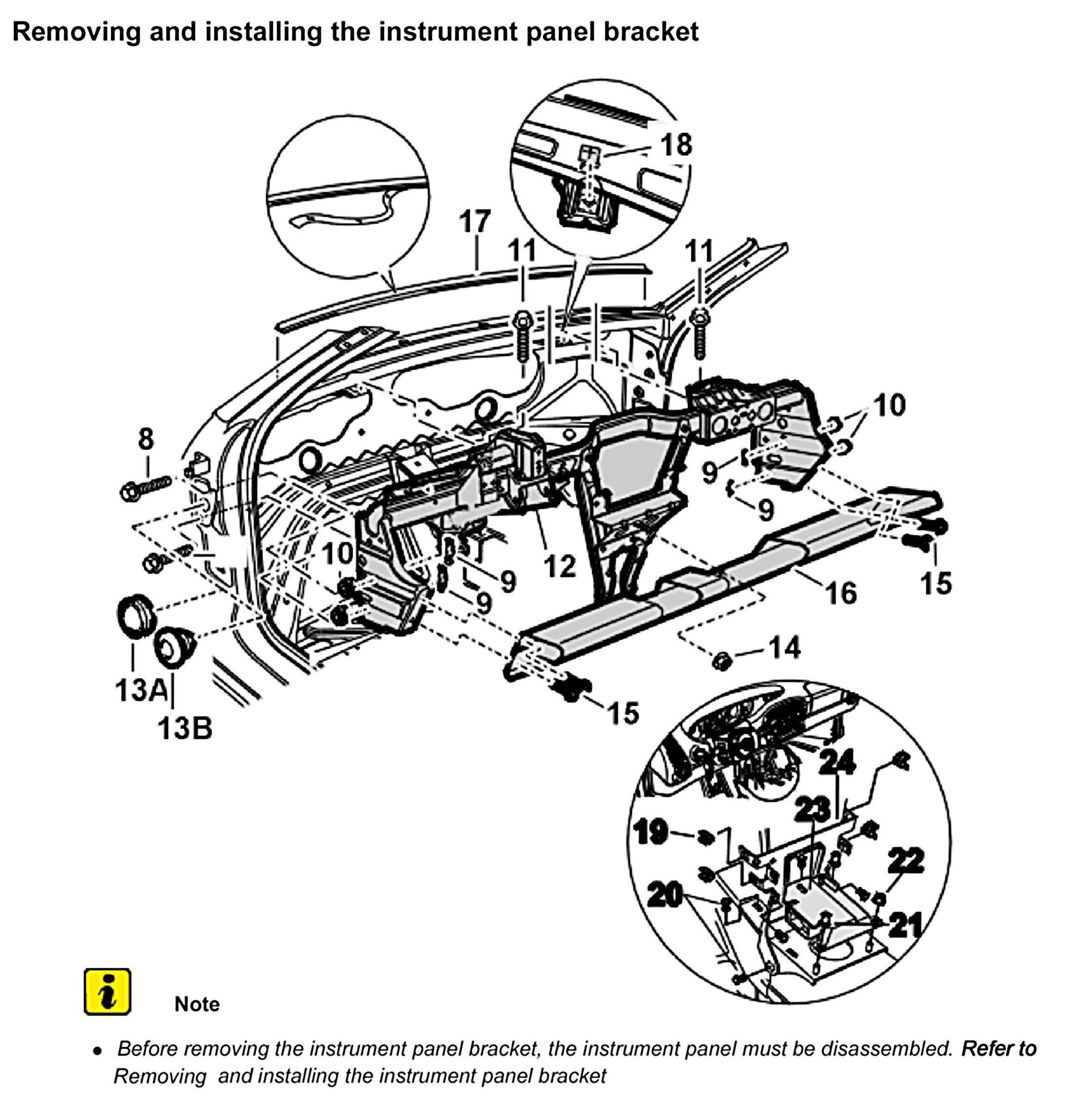 Removing and installing the instrument panel bracket