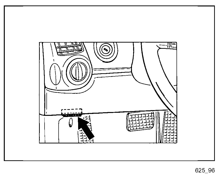 The diagnostic socket (arrow) to which the Porsche System Tester 2 is connected is located in the driver's footwell (left-hand drive vehicles) or passenger's footwell (right-hand drive vehicles) near the fuse box.
