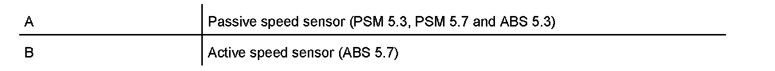 1. In the case of ABS generation 5.7 (not PSM 5.7) a new active speed sensor generation -B- has been used as from the 2002 model.