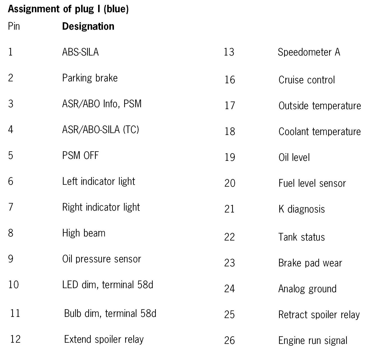 Three colour-coded 26-pole connectors are connected to the instrument cluster.