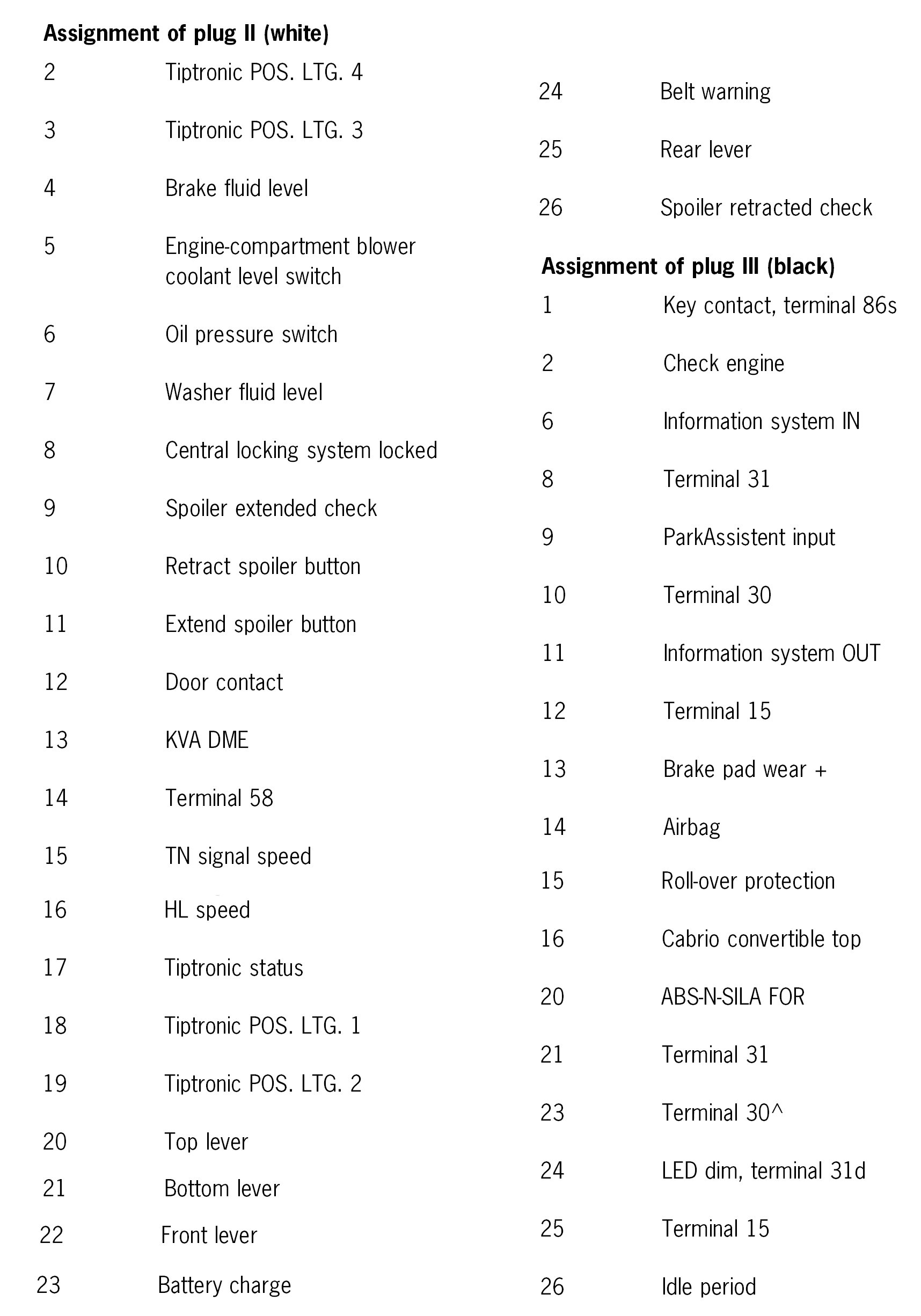Connector Assignment, Control Module: