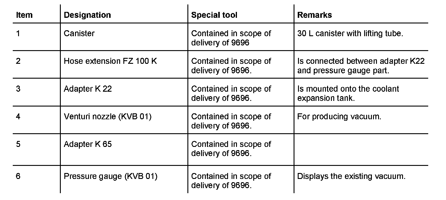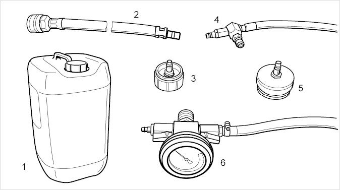 5. Place a canister with approx. 23 l coolant cleaning agent (mixed with 50% water) near to the coolant expansion tank.