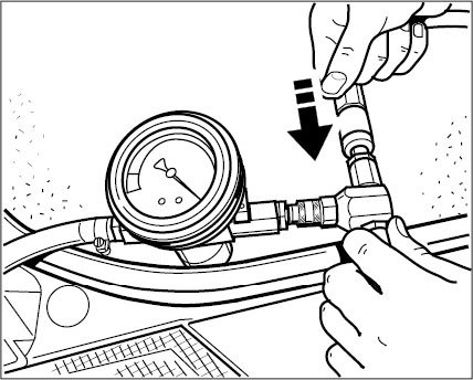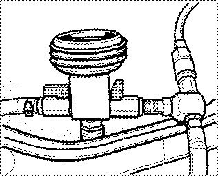 3. Connect the vacuum pressure gauge of the bleeder tool to the flexible extension. When doing so, ensure that both shutoff valves are closed (positioned 90° to flow direction)