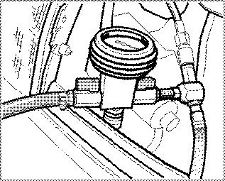 8. Open both shutoff valves on the vacuum pressure gauge until the transparent filler hose has completely filled with coolant.