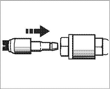 10. Insert servo container. Remove plug, insert container into the flange, turn bayonet lock clockwise -arrow- until the markings of the flange and the container are aligned.
