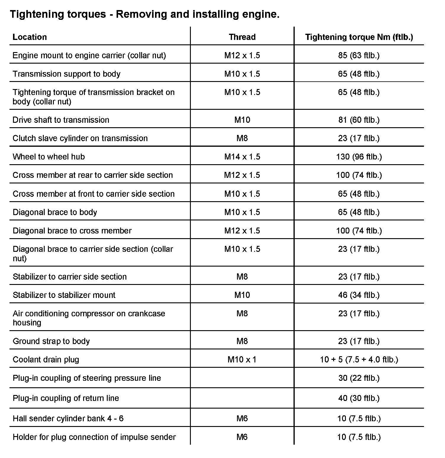 Tightening torque of engine mount to engine carrier: 85 Nm (63 ftlb.)