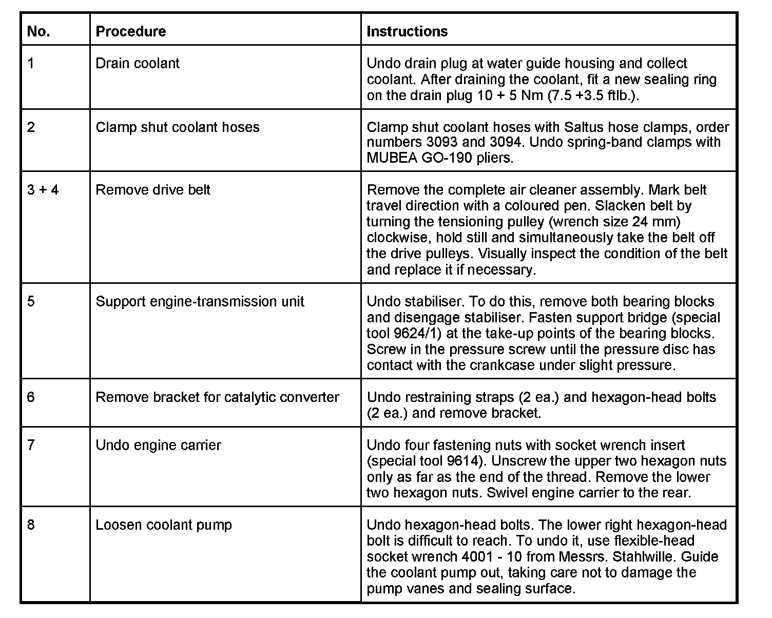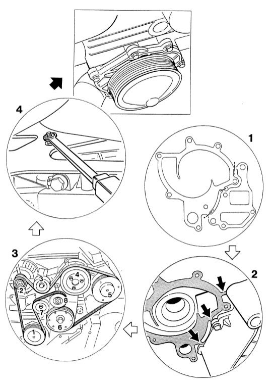 Removing and installing coolant pump (engine installed)