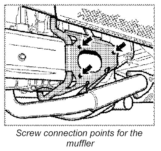 4. Tighten the three muffler fastening screws with the prescribed torque.