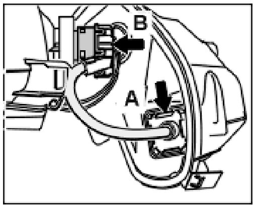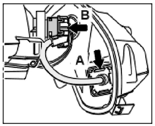 6. Unscrew electrical plug connection -B- on the gas discharge lamp (bayonet lock).