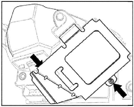 3. Unscrew fastening screws -arrow- from the control module holder and remove holder.