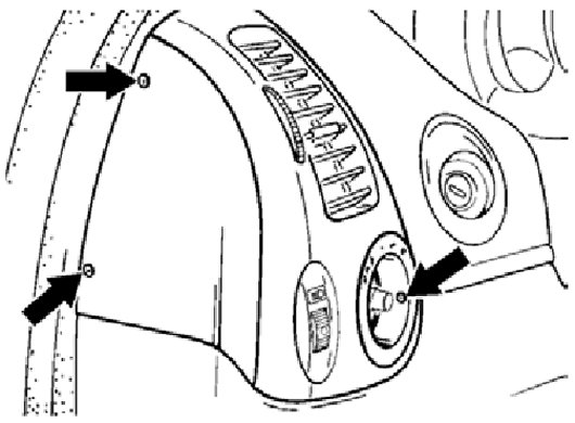 3. Undo three 4.0 x 18 Torx screws of the left side vent and carefully pull the side vent out of the dashboard. One Torx screw is located in the light switch on the right.