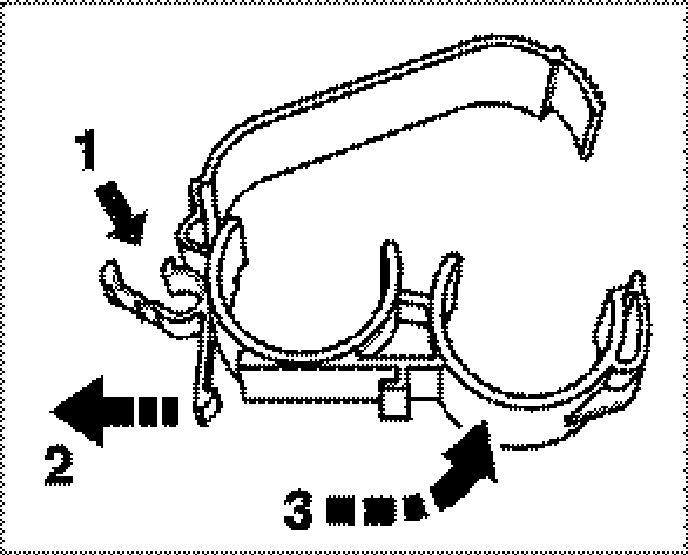 20. Remove both plastic holders complete with coolant pipes from the body. To do this, pull back the tab on each holder -2- , press the entire holder forwards and up -3- and remove the pipe package together with both holders to the rear. Remove pipes from the plastic holders in the wheel wells. Observe installation position of the coolant pipes.