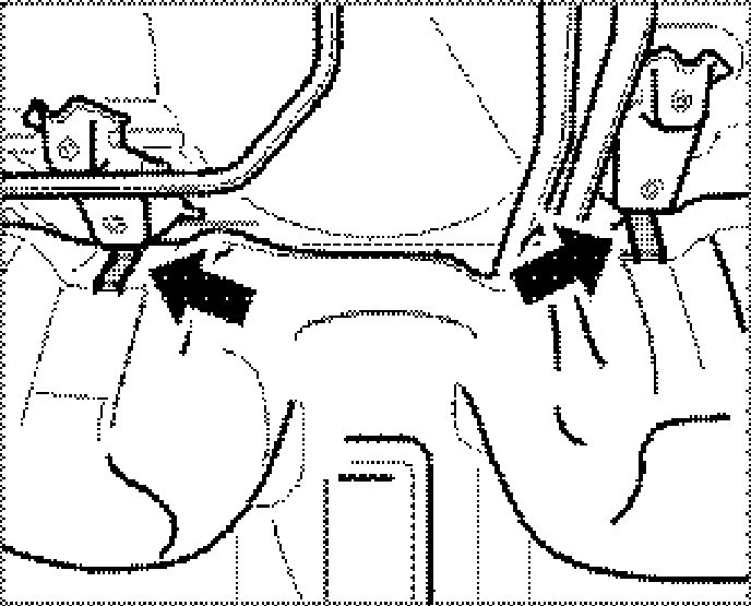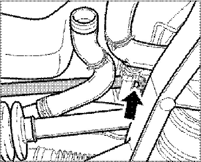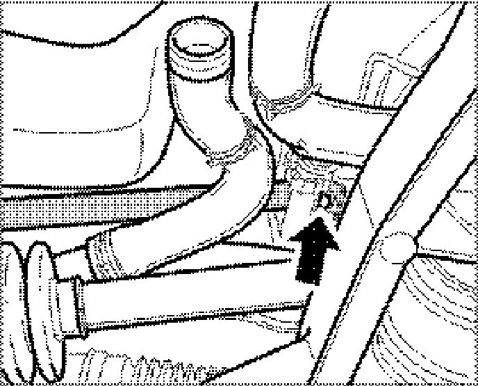 6. Clip vent line into the two holders -arrows- on the coolant pipes.