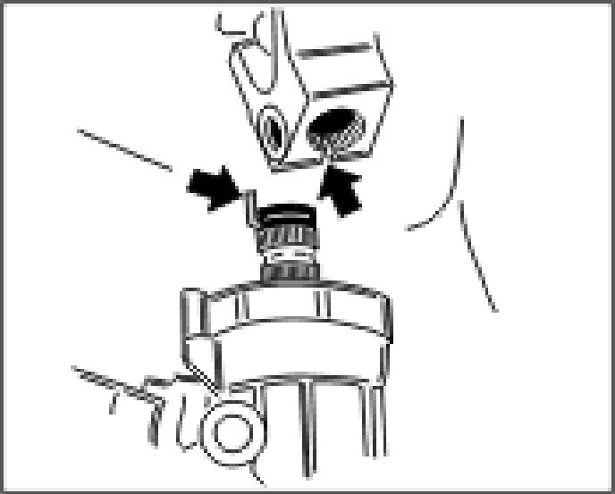 11. Turn the filler neck clockwise by approx. 45° and pull out carefully. The open surge flap must not be damaged when pulling out the filler neck. Close the opening in the fuel tank (e.g.with the cap of a spray can).