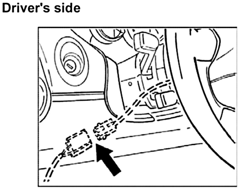 Connect the ignition device 9257 with the adapter cable 9567 directly to the 2-pin plug of the driver's airbag contact unit (under the steering column).