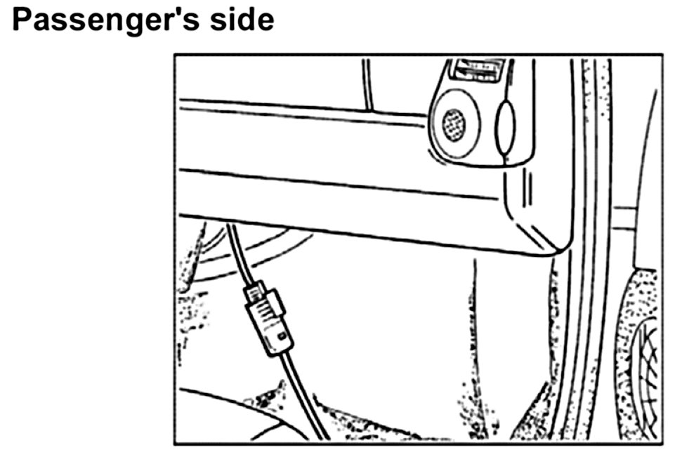 Connect the ignition device 9257 with the adapter cable 9566 to the passenger's airbag plug connection. Place the ignition device in front of the vehicle through the door gap.