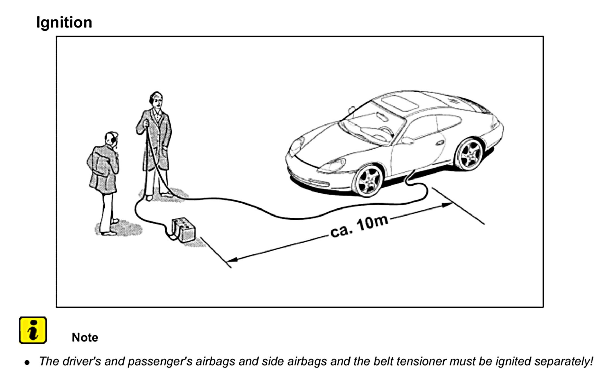 - In the case of airbag units which cannot be ignited or if the conditions for safe ignition are insufficient, always return the airbag units to Porsche or the respective importer in their original packaging!